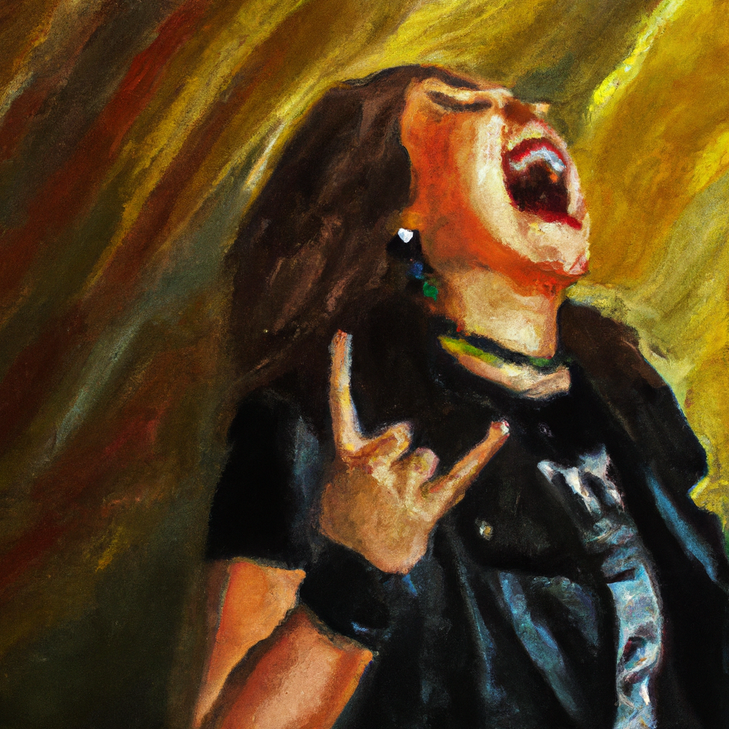 Eine Anweisung lautet beispielsweise: Young woman singing Metallica songs, concert