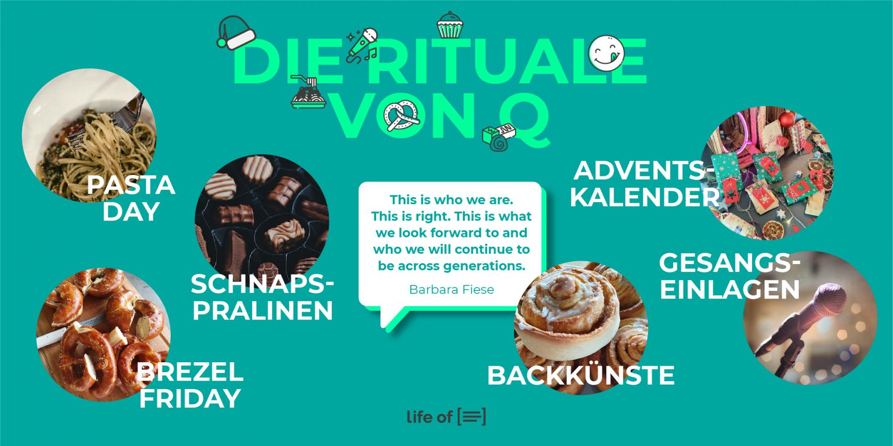 So, jetzt habt ihr einen Einblick in die Rituale der Q Crew und wir hoffen, ihr habt auch lustige oder leckere Rituale, die euch den Alltag versüßen und den Team-Spirit stärken.