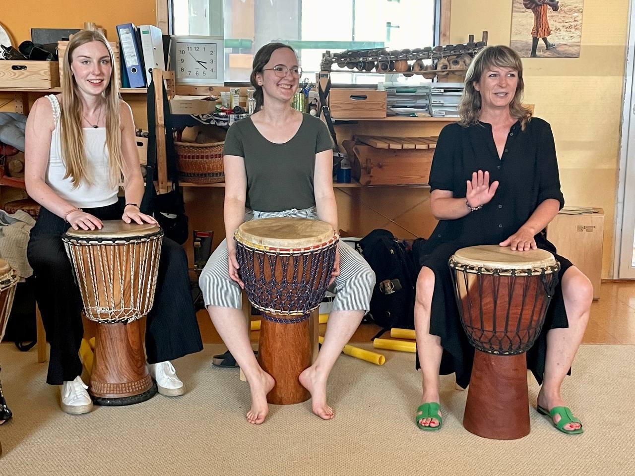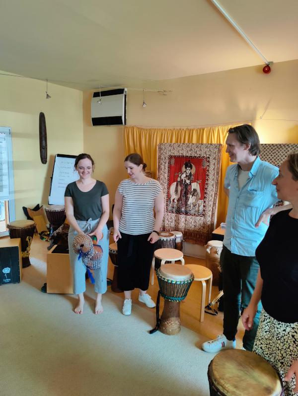 Wir starteten mit einfachen rhythmischen Übungen, die wir mit Boomwhackers durchführten. Als es dann an die westafrikanischen Djembe-Trommeln ging, gab es kein Halten mehr. Der Raum füllte sich mit einem beeindruckenden Sound-Teppich.