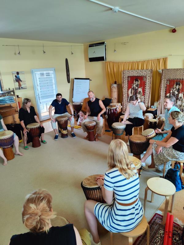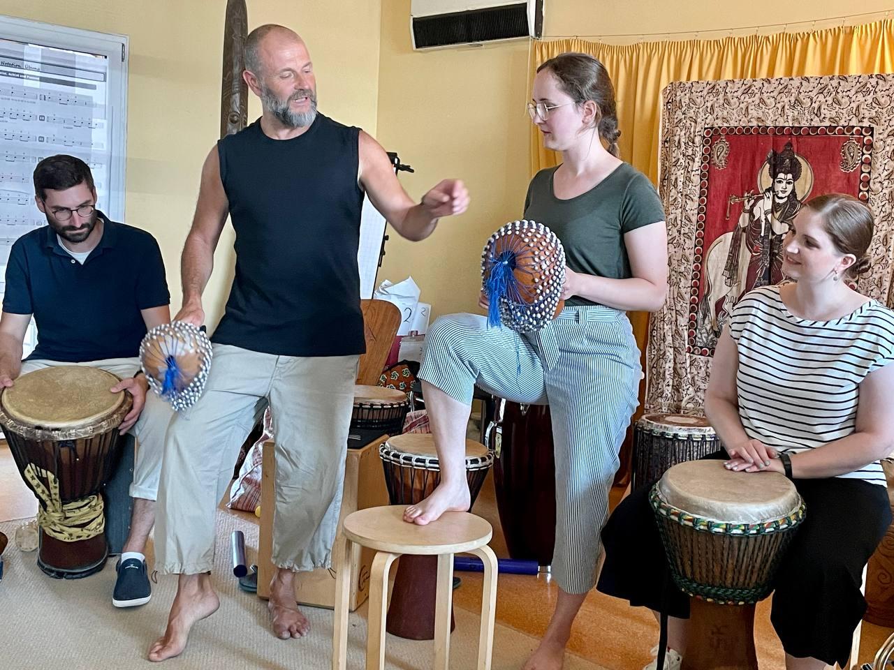 After a few theoretical explanations, our drum teacher Dirk let us get started, because drumming has to be experienced and felt.