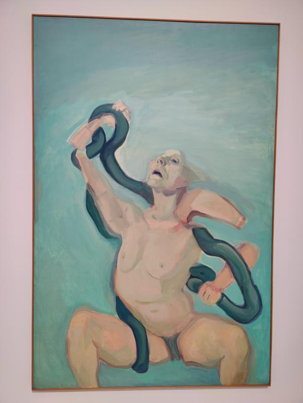 Das Titeilbild des Beitrages ist ein Foto eines großartigen Gemäldes von Maria Lassnig (1919-2014) mit dem Tiel Woman Laokoon.