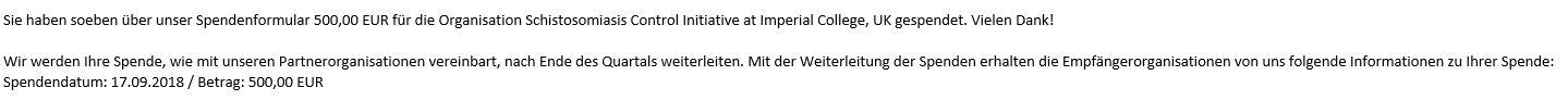 Die Spenden wurden gestern getätitgt und das Geld den Organisationen zur Verfügung gestellt.
