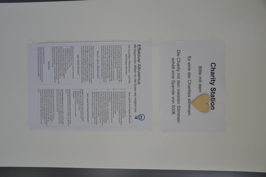 Auf dem 1Q Fest konnten sich unsere Gäste an einer Spendenaktion beteiligen. Unser Kollege Paul hat sich mit "Effektivem Altruismus" beschäftigt und dies als Leitprinzip für die Spendenaktion genutzt. Die Grundidee ist Folgende: