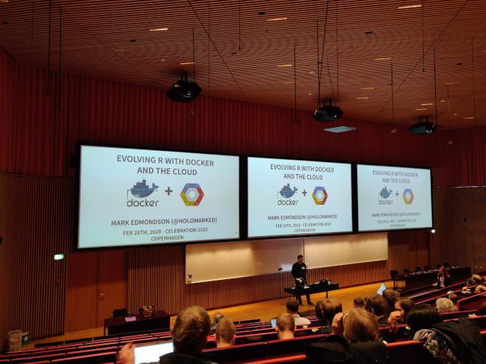 Im Kontrast zum nostalgischen Rückblick auf die Entstehung von R zeigte Mark Edmonson (IIH Nordic) wie man R in Docker-Container verpackt und Skripte auf Google Cloud (und anderen Cloud-Plattformen wie AWS und Azure) automatisiert.